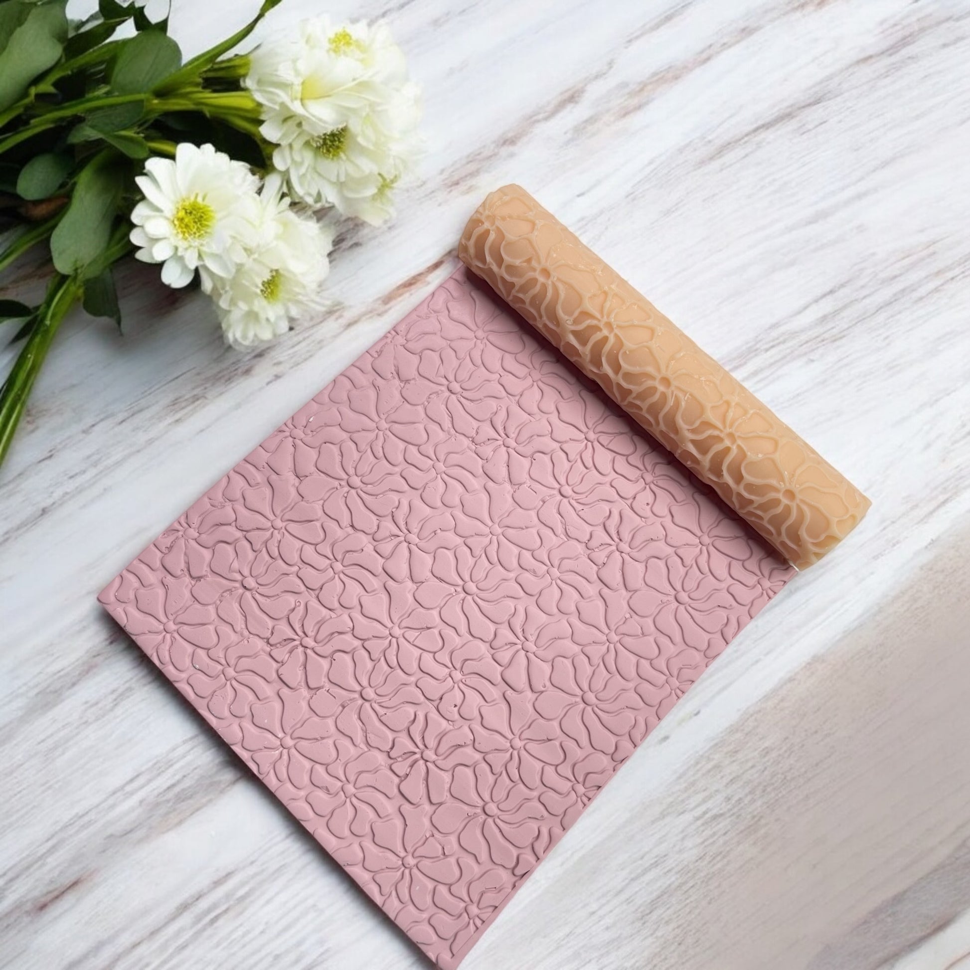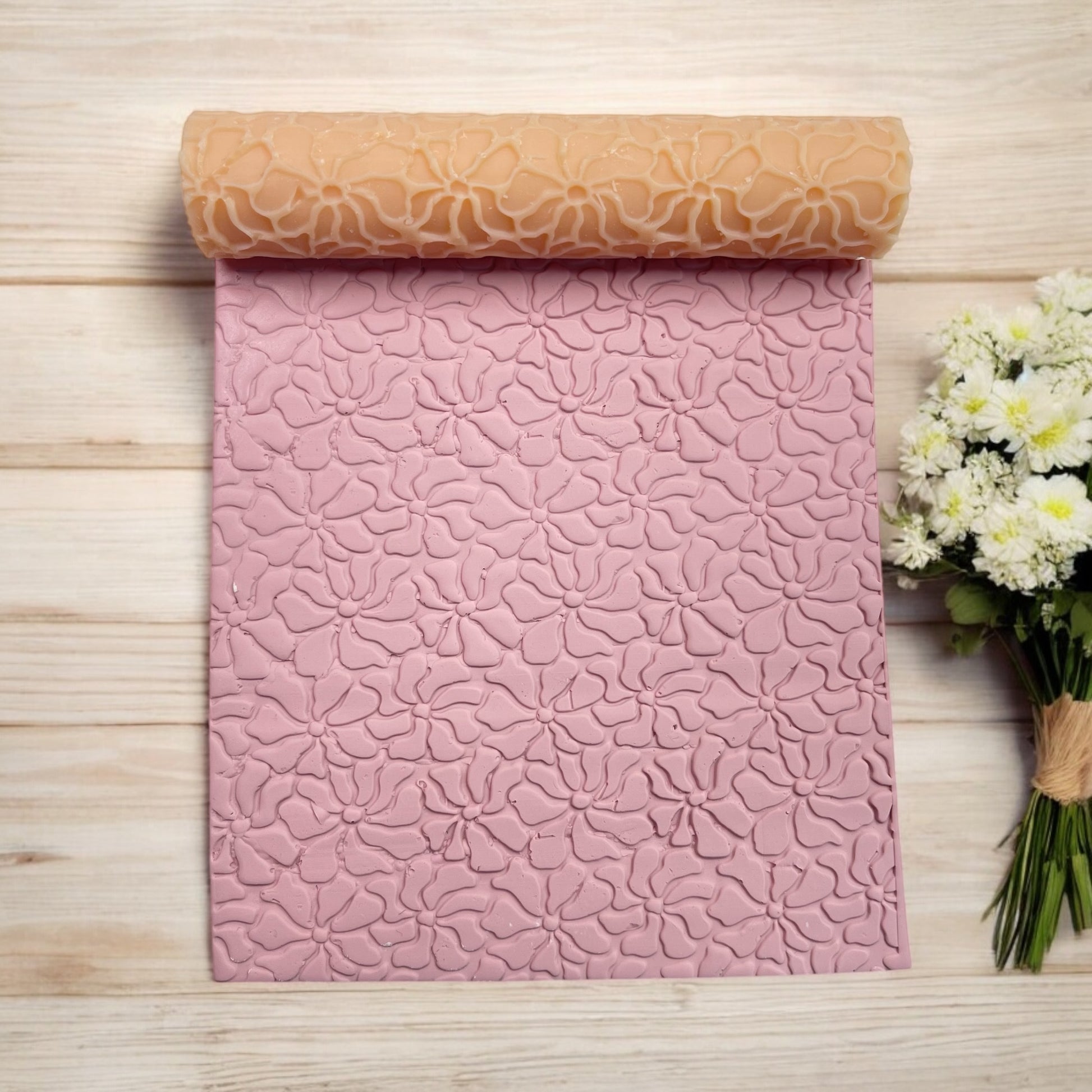 62-Rodillo textura flor matisse para arcilla polimérica
