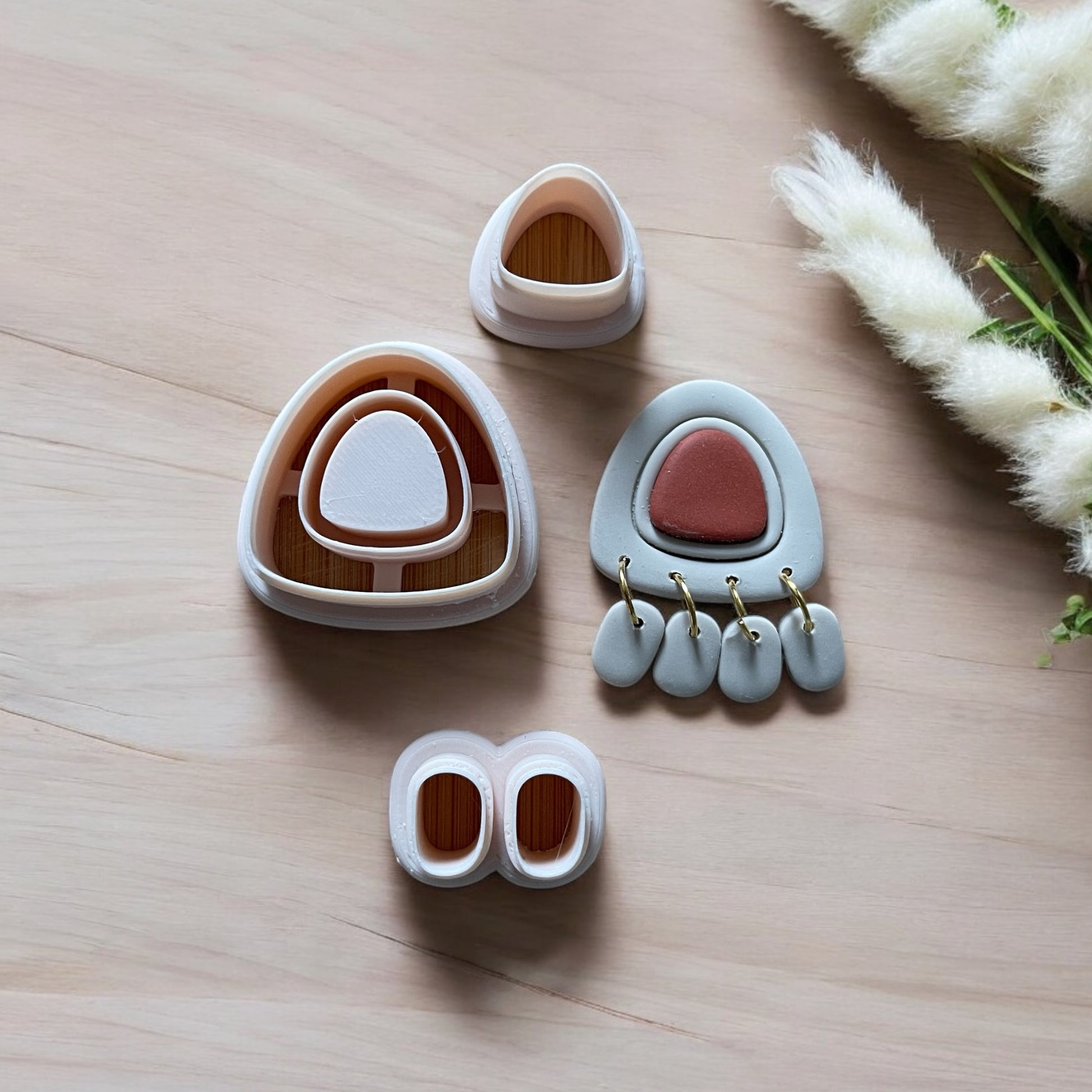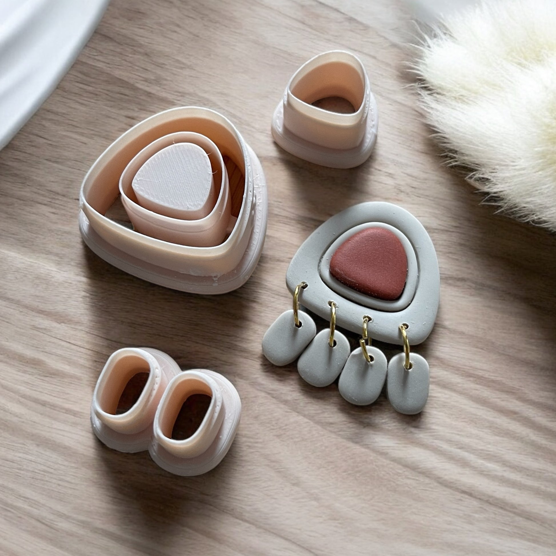 Cada cortador para hacer pendientes de arcilla polimérica, está diseñado a medida e impreso en 3D con plástico PLA de alta calidad.